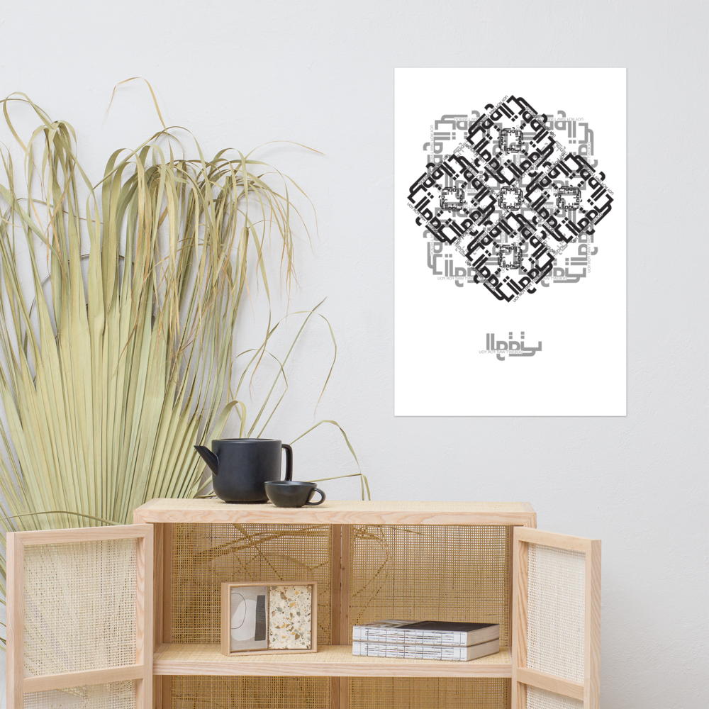 A combination of Arabic and English typography aligned to create decretive patterns. so why not make a statement in any room with this Print and start your Arabic typography collection?