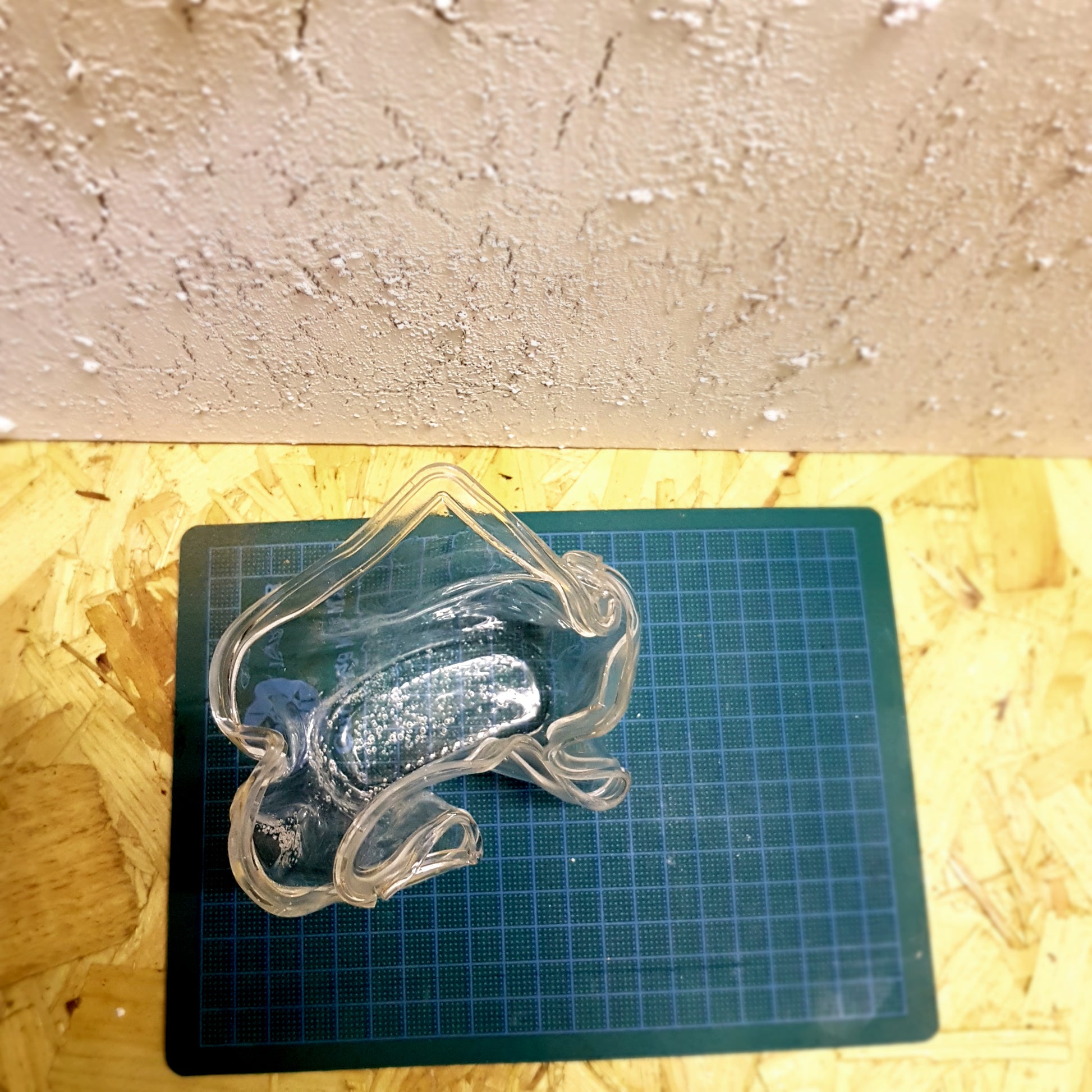 Tidy your desk in style. This transparent desk tidy is a statement on any workstations. It's formed by hand making it unique and one of a kind.