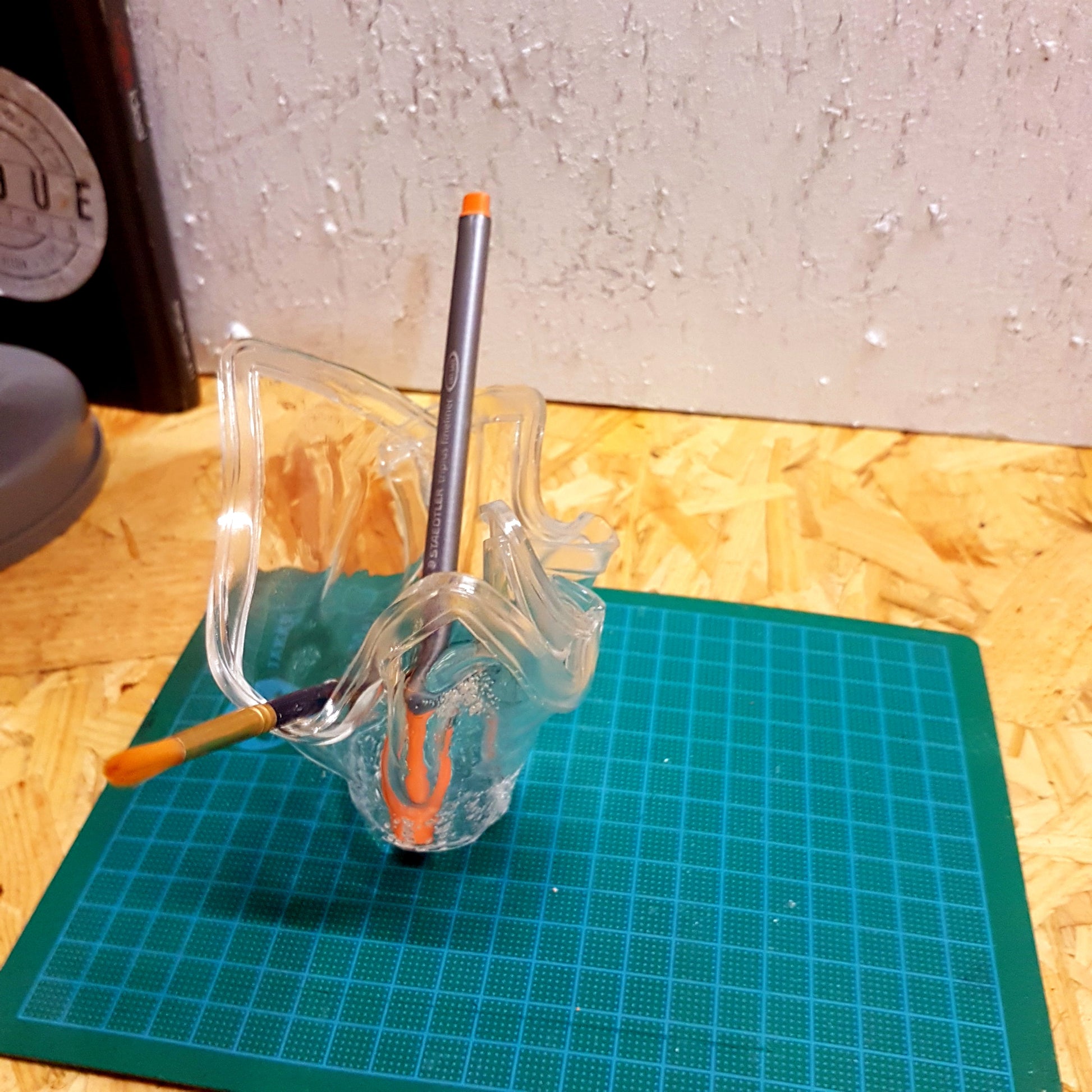Tidy your desk in style. This transparent desk tidy is a statement on any workstations. It's formed by hand making it unique and one of a kind.