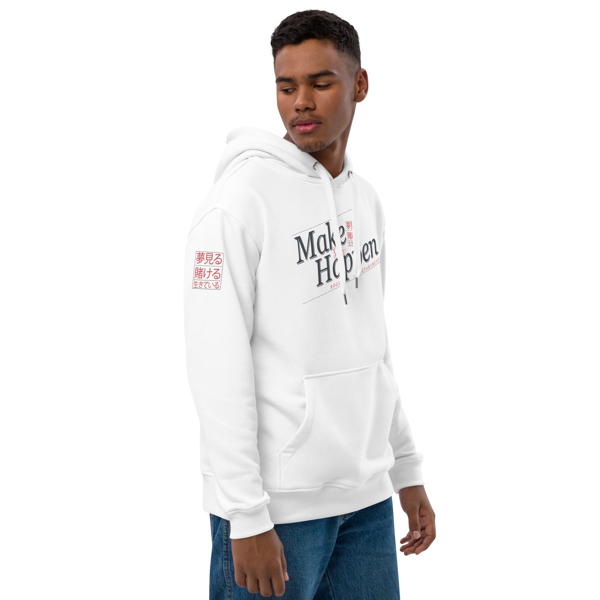 Premium eco hoodie made of organic and recycled materials. With its comfortable fit, front pouch pocket, and double-layered hood, the hoodie is a classic streetwear piece that can be styled with multiple different looks.